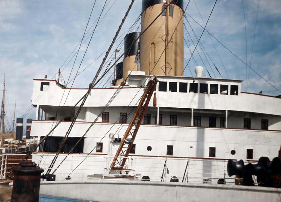 On y trouve entre autres la barre à roue (6) et (7), les transmetteurs d'ordres (1) à (5), le compas gyroscopique (8), la salle des cartes, le central d'alarmes. |