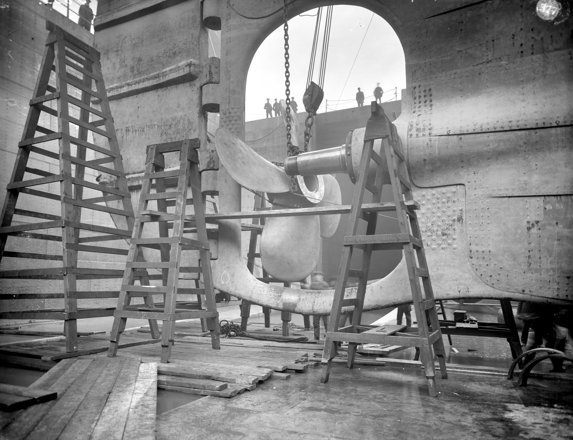 Le 4 janvier 1912, l’Olympic traverse une tempête dont il se tire sans dommages. Il a moins de chance le 24 février suivant, lorsqu'il perd une pale d’hélice et doit à nouveau retourner aux chantiers. Pour le réparer plus rapidement, on réquisitionne des pièces prévues pour le Titanic dont le départ est reporté du 20 mars au 10 avril 1912. À cause d'une grève des mineurs de charbon en mars de la même année, le navire effectue une traversée depuis New York à vitesse réduite, transportant du charbon dans les cabines non utilisées, afin que son sister-ship dispose d'assez de combustible pour effectuer sa traversée inaugurale. Le 30 mars, Edward John Smith cède le commandement au capitaine Herbert James Haddock.