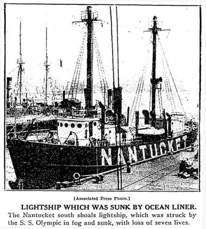 Le 15 mai 1934, l'Olympic a accidentellement percuté et coulé le bateau phare de Nantucket, le Lv-117. L'Olympic était environ 75 fois plus grand que le bateau phare de Nantucket et est entré en collision avec lui à une vitesse de seulement 3 noeuds, s'arrêtant presque à temps. Les passagers de l'Olympic ont à peine remarqué la collision, et le passager de première classe Sir Arthur Steel-Maitland n'a enregistré qu'un "léger coup". Le capitaine de l'Olympic, John W. L Binks, a ordonné le lancement de canots de sauvetage pour venir au secours de l'équipage, mais le Lv-117 a coulé en une minute. Sept des onze membres d'équipage du bateau phare sont morts, trois sont morts à bord de l'Olympic et seulement quatre ont survécu. L'Olympic a fait la une des journaux et est arrivée à New York avec ses drapeaux en berne.
