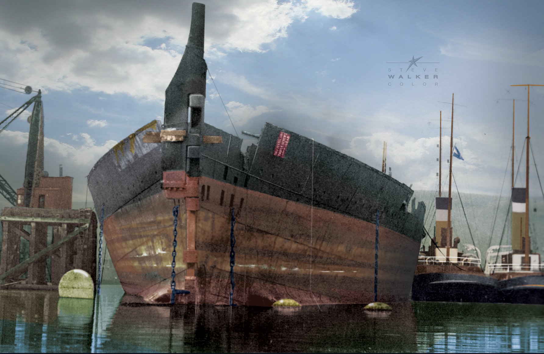 Il s’agit maintenant d’amarrer l’Olympic au quai de (anciennement) Palmer Yards.