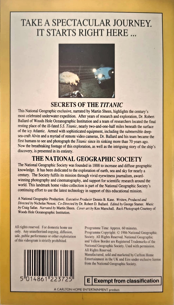 Munis d'un équipement sophistiqué, dont le submersible Alvin et d'une myriade de caméras vidéo, le Dr Robert BALLARD et son équipe ont été les tout premiers, depuis le naufrage il y 70 ans, à voir et à photographier le Titanic en juillet 1986.