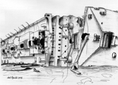 Alors que je regardais ses ailettes disparaître dans la petite fissure séparant les énormes chaudières, je pris quelques instants privés pour regarder autour de lui l'état parfait de ce compartiment; jauges vitrées et immenses plaques de laiton montées sur la cloison, luminaires, pelles et brouettes, le tout avec des poignées en bois intactes recouvert d'une couverture de limon momifié.