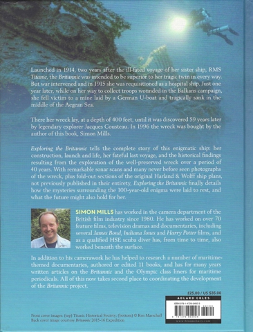There her wreck lay, at a depth of 400 feet, until it was discovered 59 years later by legendary explorer Jacques Cousteau. In 1996 the wreck was bought by the author of this book, Simon Mills. Exploring the Britannic tells the complete story of this enigmatic ship: her construction, launch and life, her fateful last voyage, and the historical findings resulting from the exploration of the well-preserved wreck over a period of 40 years. With remarkable sonar scans and many never before seen photographs of the wreck, plus fold-out sections of the original Harland & Wolff ship plans, not previously published in their entirety, Exploring the Britannic finally details how the mysteries surrounding the 100-year-old enigma were laid to rest, and what the future might also hold for her. |