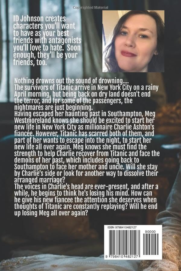 The survivors of Titanic arrive in New York City on a rainy April morning, but being back on dry land doesn't end the terror, and for some of the passengers, the nightmares are just beginning. Having escaped her haunting past in Southampton, Meg Westmoreland knows she should be excited to start her new life in New York City as millionaire Charlie Ashton's fiancée. However, Titanic has scarred both of them, and part of her wants to escape into the night, to start her new life all over again. Meg knows she must find the strength to help Charlie recover from Titanic and face the demons of her past, which includes going back to Southampton to face her mother and uncle. Will she stay by Charlie's side or look for another way to dissolve their arranged marriage? The voices in Charlie's head are ever-present, and after a while, he begins to think he's losing his mind. How can he give his new fiancee the attention she deserves when thoughts of Titanic are constantly replaying? Will he end up losing Meg all over again? |