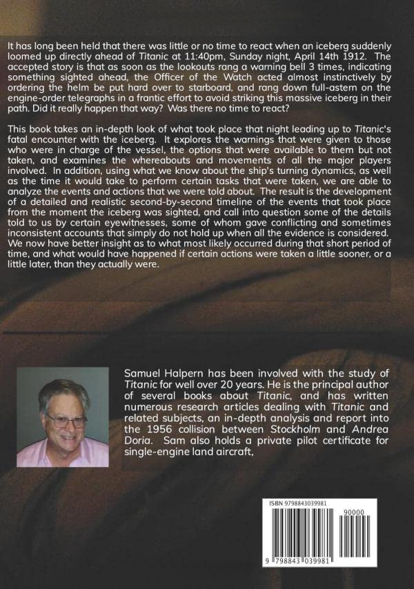 This book takes an in-depth look of what took place that night leading up to Titanic's fatal encounter with the iceberg.