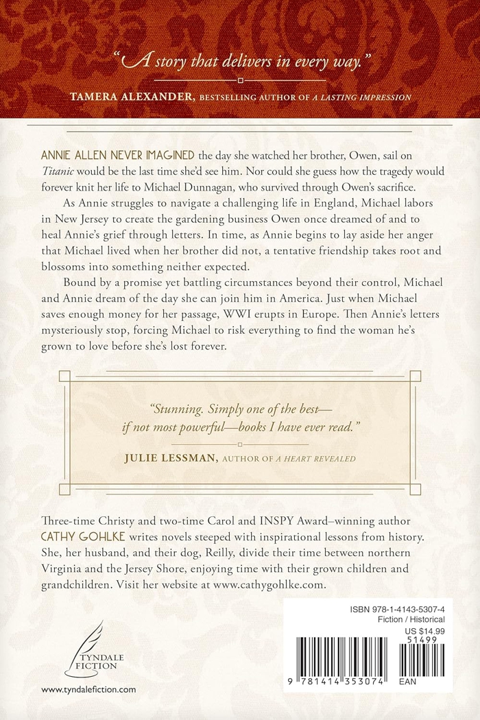 Annie Allen doesn’t care what Michael promised Owen. She only knows that her brother is gone like - their mother and father - and the grief is enough to swallow her whole. As Annie struggles to navigate life without Owen, Michael reaches out to her through letters. In time, as Annie begins to lay aside her anger that Michael lived when Owen did not, a tentative friendship takes root and blossoms into something neither expected. Just as Michael saves enough money to bring Annie to America, WWI erupts in Europe. When Annie’s letters mysteriously stop, Michael risks everything to fulfill his promise - and find the woman he’s grown to love - before she’s lost forever. |