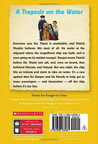 Everyone says the Titanic is unsinkable, and Patrick Murphy believes this most of all. He grew up near the shipyard where the magnificent ship was built and officially started working there when he turned thirteen. He's even been chosen to be part of the crew during the Titanic's maiden voyage! Ranger meets Patrick before the ship sets sail, and once on board, they befriend Maryam and Hamad. But one night, the ship hits an iceberg and starts to take on water. It's a race against time for Ranger and his friends to help get as many passengers - including themselves - off the ship before it's too late. |