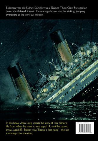 Jean Legg décrit avec des mots simples et sincères le destin de son père, qui ne voulait pas être un héros. Après avoir sauté dans la mer près de la poupe, Sidney Daniels a atterri sur le bateau pliant renversé B. Sidney n'a jamais perdu son amour de la mer après cela. Il rejoint ensuite l'Olympic. Malgré les terribles expériences de la Première Guerre mondiale sur la Marne, en France, et les revers personnels (sa première femme est morte du typhus), Sidney était satisfait de sa vie. Il a effectué 222 traversées de l'Atlantique seul sur l'Olympic, y compris son voyage inaugural et son dernier voyage avant d'être démoli en 1935, et il était également sur plusieurs autres navires tels que le Majestic, le Teutonic, le Mauretania et le Berengaria. Le Georgic était son dernier navire. Comme l’écrit sa fille Jean Legg, il avait un grand amour pour New York et les États-Unis, mais il a rejeté un poste privé lucratif aux États-Unis. Après l'abandon de l'Olympic , Sidney Daniels a servi comme gréeur dans les docks de Portsmouth et comme assistant de raid aérien pendant la Seconde Guerre mondiale. En 11 chapitres, Jean Legg décrit la vie de son humble père dans un style très personnel et plein de fierté envers lui. Sidney Daniel n'a pas beaucoup parlé du naufrage du Titanic; ça lui a fait trop mal. Alors qu’ils cherchaient des survivants pour le film "A Night To Remeber", il s’est manifesté après beaucoup d’hésitations. Pour lui, ce n’était pas une "Nuit à retenir", mais une "Nuit à oublier". Il voulait contribuer à la vérité de la représentation. Comme le dit sa fille Jean Legg, la projection du film a été pour lui une répétition du traumatisme. Le 29 mai 1983, Sidney Daniels, le dernier survivant de l'équipage du Titanic, décède à l'âge de 89 ans. |