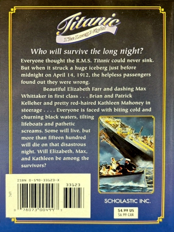 Elizabeth will never go to college, never learn to be a reporter—as she sees it, her life is over as soon as the Titanic reaches port.