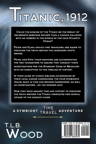 A time traveler shares the startling words spoken by an old man murmuring broken memories from a bygone era. Could the sinking of the Titanic in 1912 have been the result of a deliberate act of sabotage rather than a chance collision with an iceberg in the middle of the cold Atlantic Ocean? Peter and Elani, novice travelers, are eager to take on the assignment to discover the truth behind the legendary ship's demise. Petra and Kipp, their mentors, must accompany the two youngsters and assure they conduct their investigations per the symbiont code of behavior with no disruption to the timeline of history. In their guise of human siblings accompanied by their loyal canine companions, the four symbionts must travel back in time incognito and become passengers as well as investigators - on the doomed ship. They face a race against time and history in order to discover the truth before the Titanic completes her fateful voyage to the ocean's floor. |