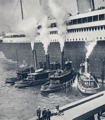 Son arrivée est cependant marquée par un incident : le 21 juin, alors qu'il est guidé par douze remorqueurs, le paquebot heurte l'un d'entre eux, le O.L. Hallenbeck, à l'arrière.