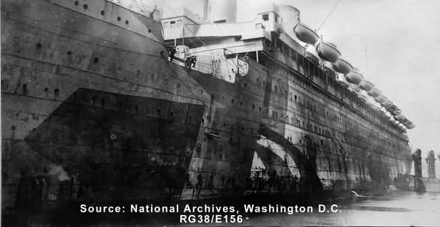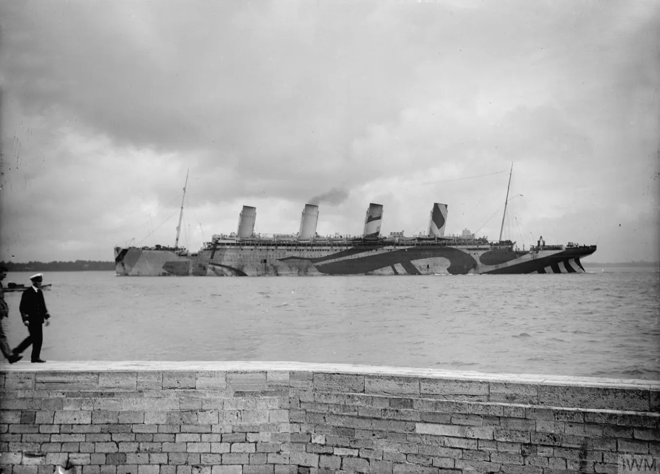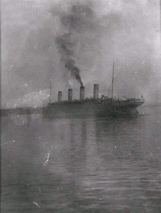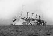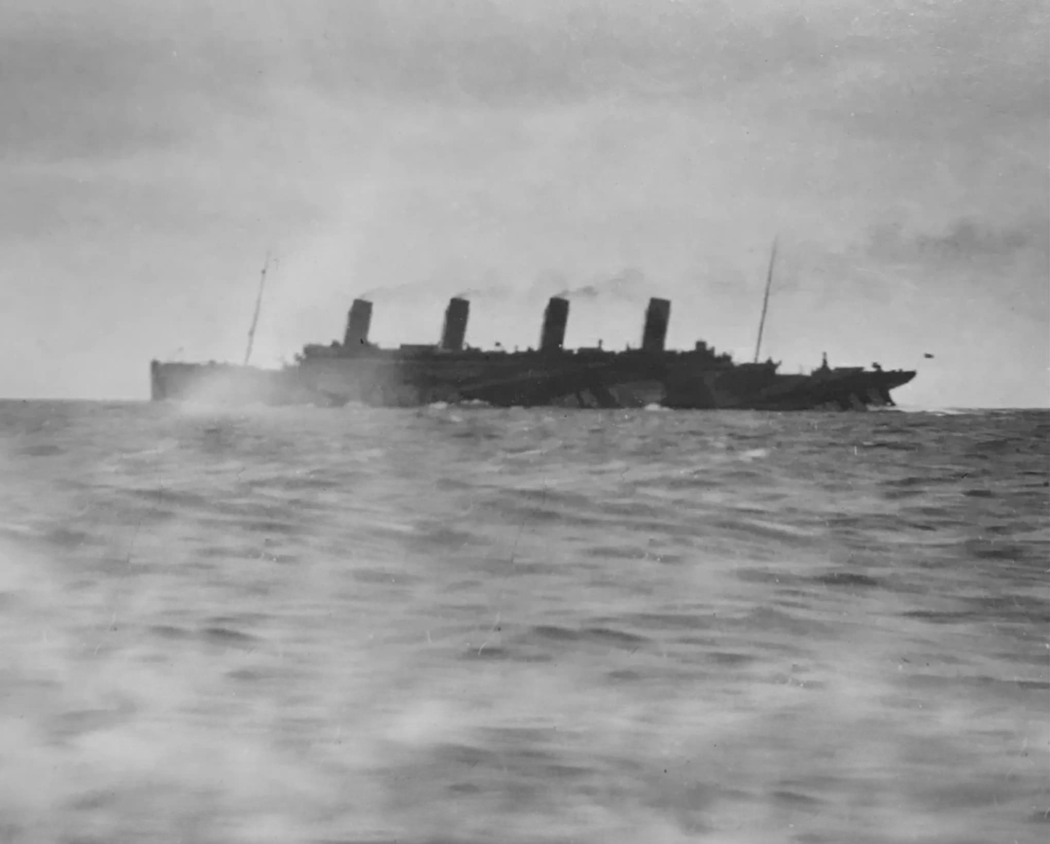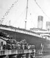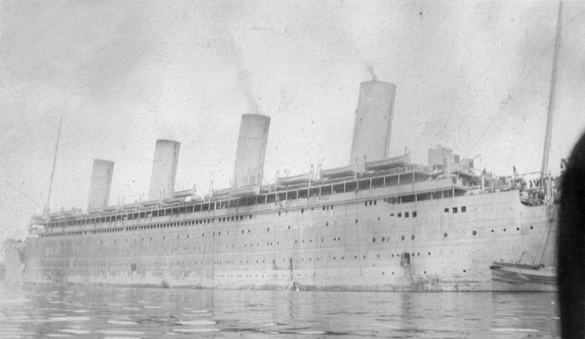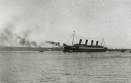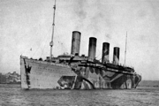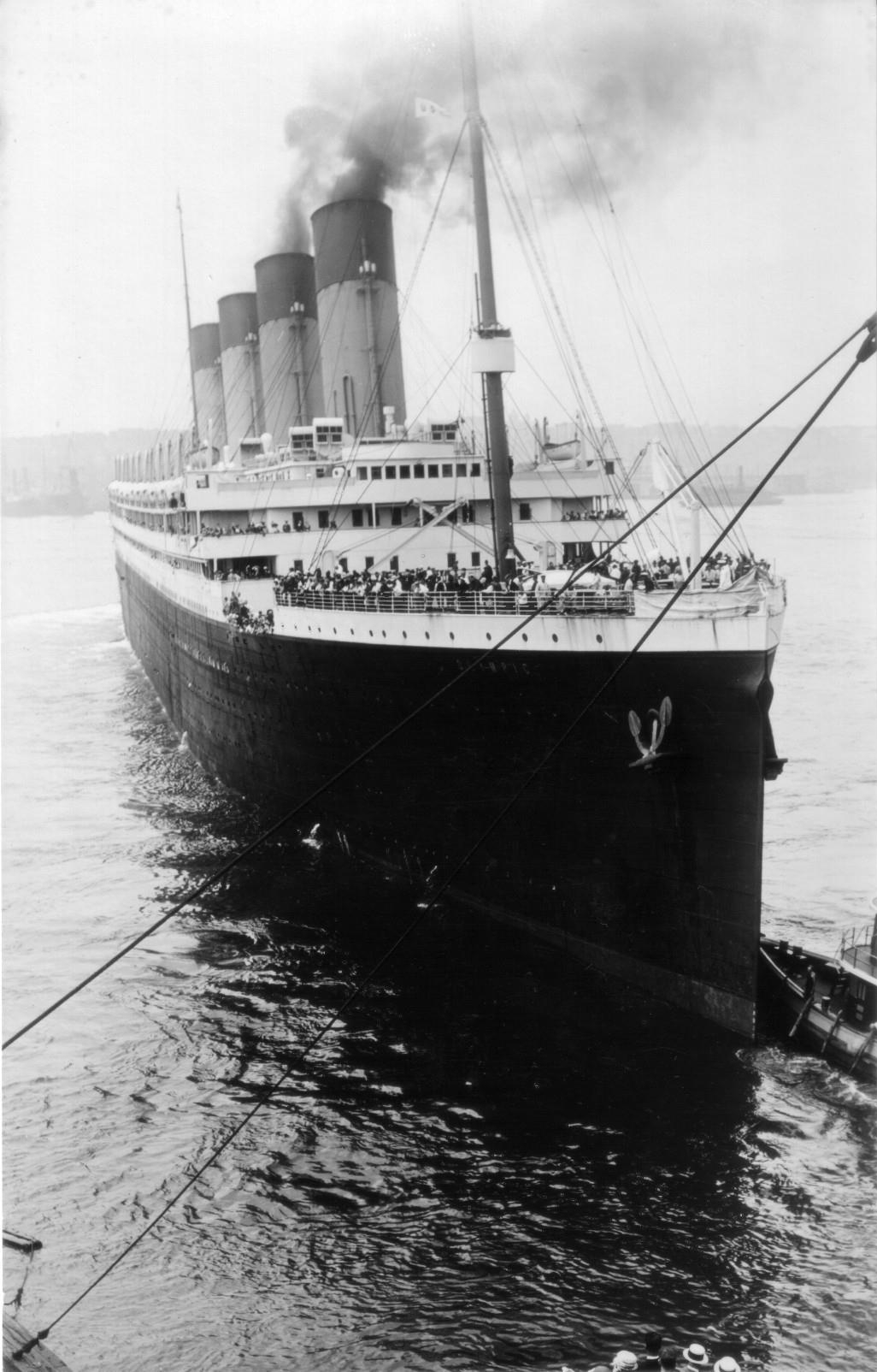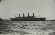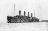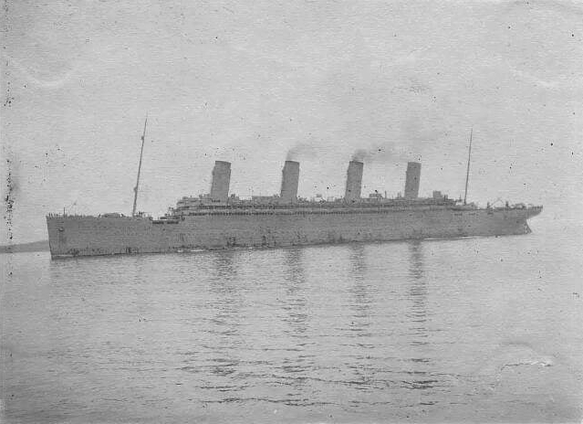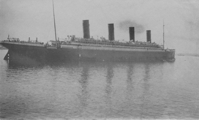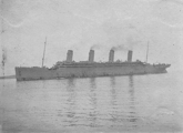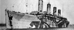 Dans le même temps, le paquebot inspire une ruse au capitaine Pollack, commandant du paquebot Allemand Kronprinzessin Cecilie : pour tromper les navires de guerre britanniques, il fait peindre en noir l'extrémité des cheminées jaunes de son propre vaisseau. Si la supercherie est facilement décelable, elle permet cependant au paquebot d'atteindre en toute sécurité un port neutre (bien qu'il ne s'agisse là que d'un sursis, le navire étant confisqué par les Américains lors de leur entrée en guerre en 1917). Pendant la Première Guerre mondiale, l'Olympic continue à transporter des passagers sous le commandement du capitaine Herbert James Haddock, en service conjoint avec le Baltic et l’Adriatic ainsi que le Lapland de la White Star Line. Cependant, ce service est de courte durée, et il est prévu que l'Olympic soit retiré du service et conservé aux côtés de son sister-ship inachevé à la fin du mois d'octobre. Le 27 octobre 1914, alors qu'il rentre de New York et s'apprête à traverser un secteur miné au large de l'Irlande, le navire reçoit un SOS du HMS Audacious et vient à son secours. Le navire de guerre a en effet heurté une mine déposée quelque temps auparavant par le paquebot allemand Berlin. L'explosion semblant provenir d'une torpille, l'escadron accompagnant le HMS Audacious s'est dispersé. Cependant, l'Olympic arrive sur place. Ses canots sont affalés et récupèrent les naufragés. Violet Jessop, en service sur l'Olympic à ce moment-là, note l'émerveillement des marins rescapés lorsqu'ils découvrent la magnificence du paquebot en comparaison de leurs quartiers sur le HMS Audacious. |