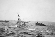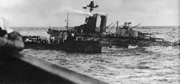 Une explosion dans la cale avant du vaisseau l'achève et il sombre.