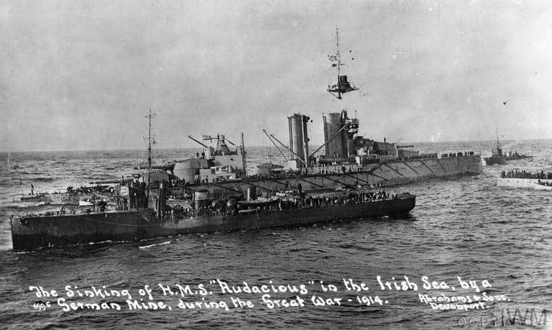 La déflagration fait une victime, un officier qui se trouvait sur le pont du HMS Liverpool, un autre navire venu au secours du HMS Audacious.