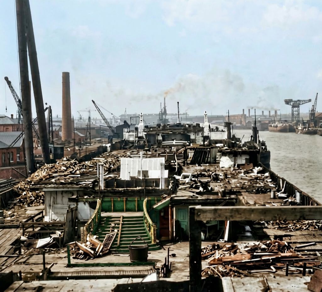 Il s’agit maintenant d’amarrer l’Olympic au quai de (anciennement) Palmer Yards.