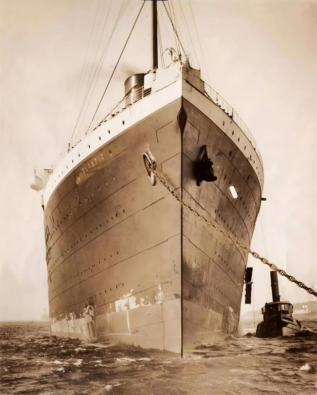 Si le remorqueur subit d'importants dommages, l'Olympic n'a quant à lui rien de plus qu'une bosse.